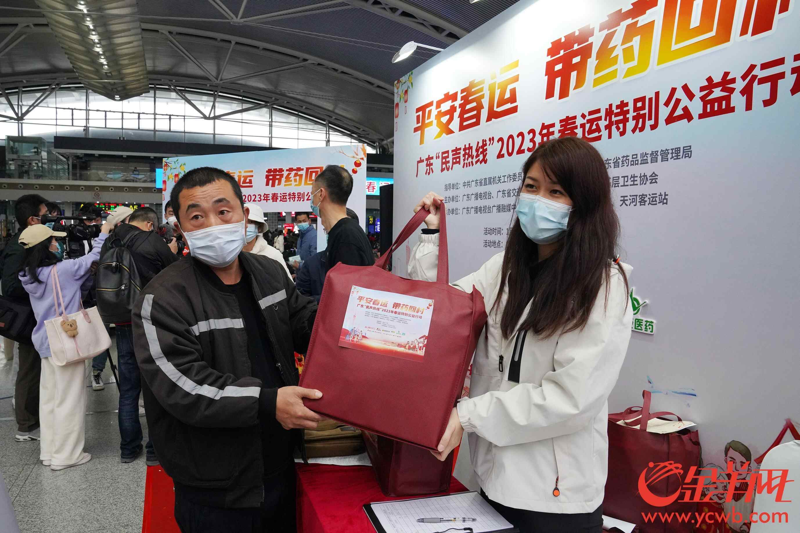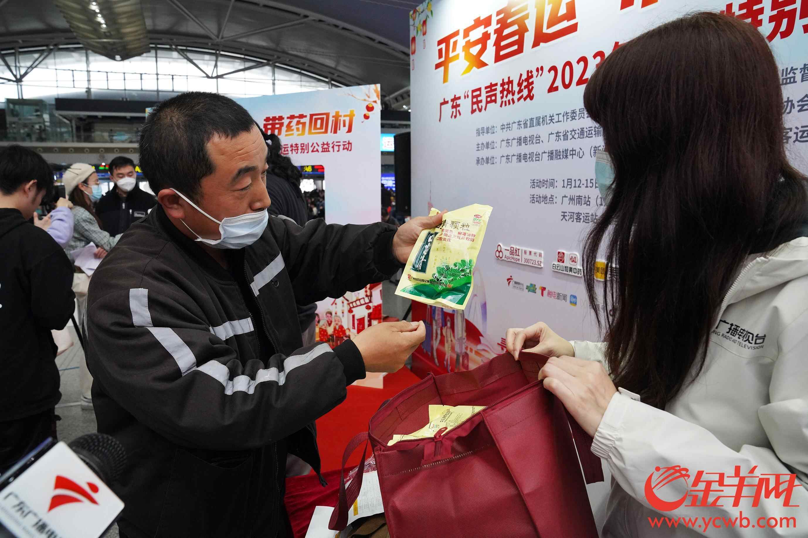 1月12日,“平安春运 带药回村”公益行动在广州南站启动。