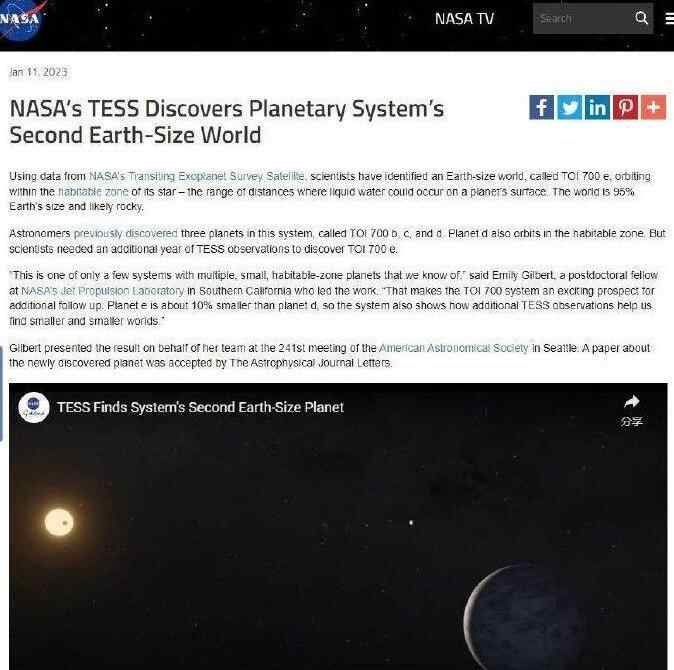 TOI700是一颗距地球大约100光年的小恒星,行星d绕其运行一周需要37天,行星e需要28天。行星e位于行星c和d之间,和行星d一样处于所谓的宜居地带,因为体积太小,NASA额外花费一年才得以发现。