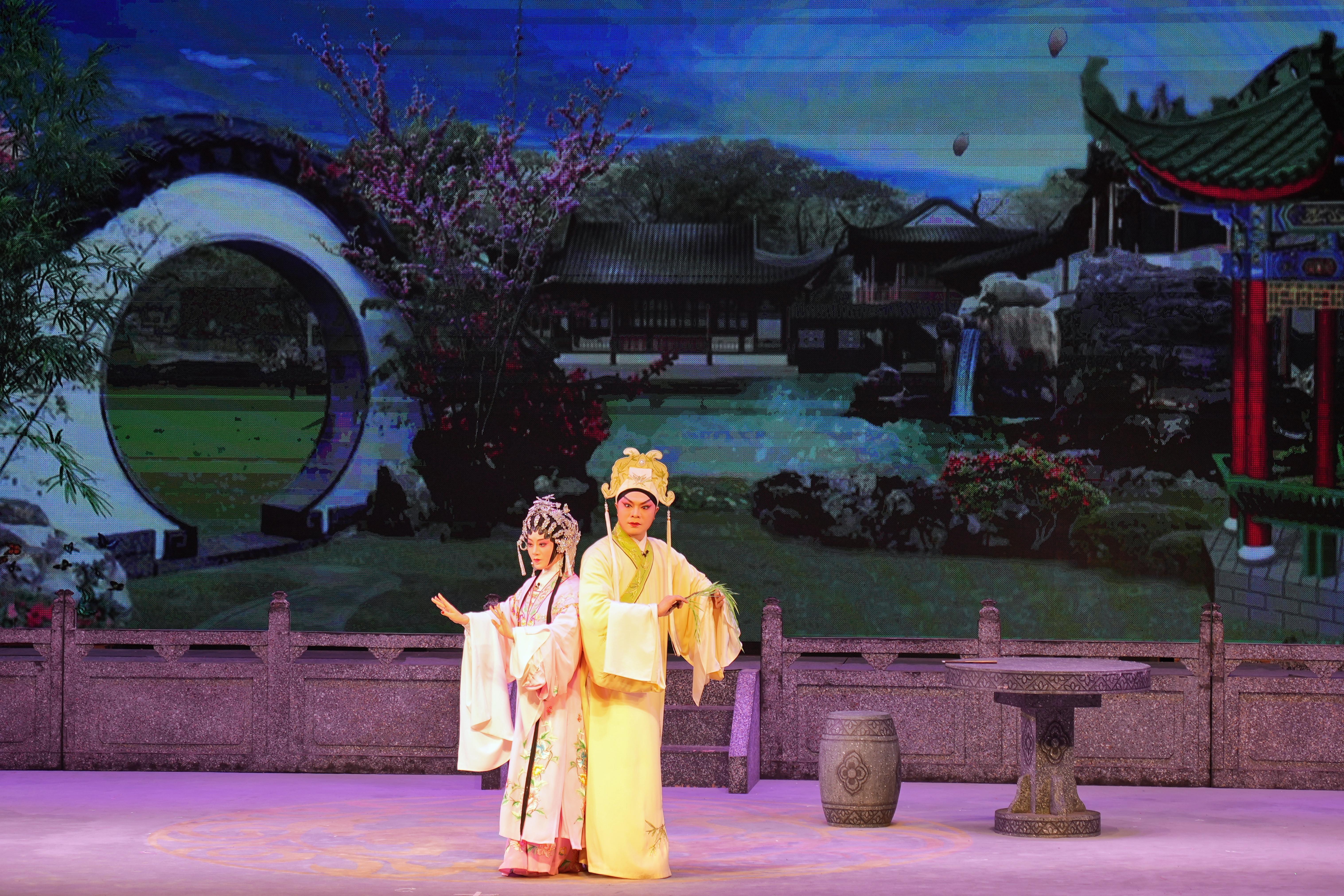 著名青年粤剧文武生陈振江与粤港澳大湾区青年戏剧协会会长李卉茵(澳门)合作演出折子戏《牡丹亭》之“游园惊梦”