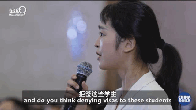 中国留学生看完美国大使的回答后,认为其表态是极其虚伪的。受禁令影响的刘正在接受采访时说: