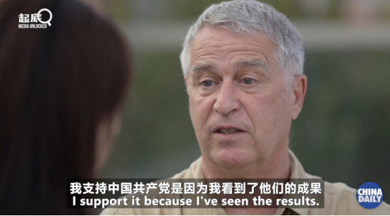 “我支持中国共产党是因为看到了他们的成果,因为我了解在这里发生了什么。当我初到中国时,这里存在着诸如腐败、铺张浪费、办事效率低下等问题。如今中国依然不够完美,但是无论你从哪个维度来衡量——医疗、教育、犯罪率、收入水平、经济发展、通胀率,从我们能想到的所有可以衡量的、与生活相关的各个正面维度来看,中国正在全方位地进步。”