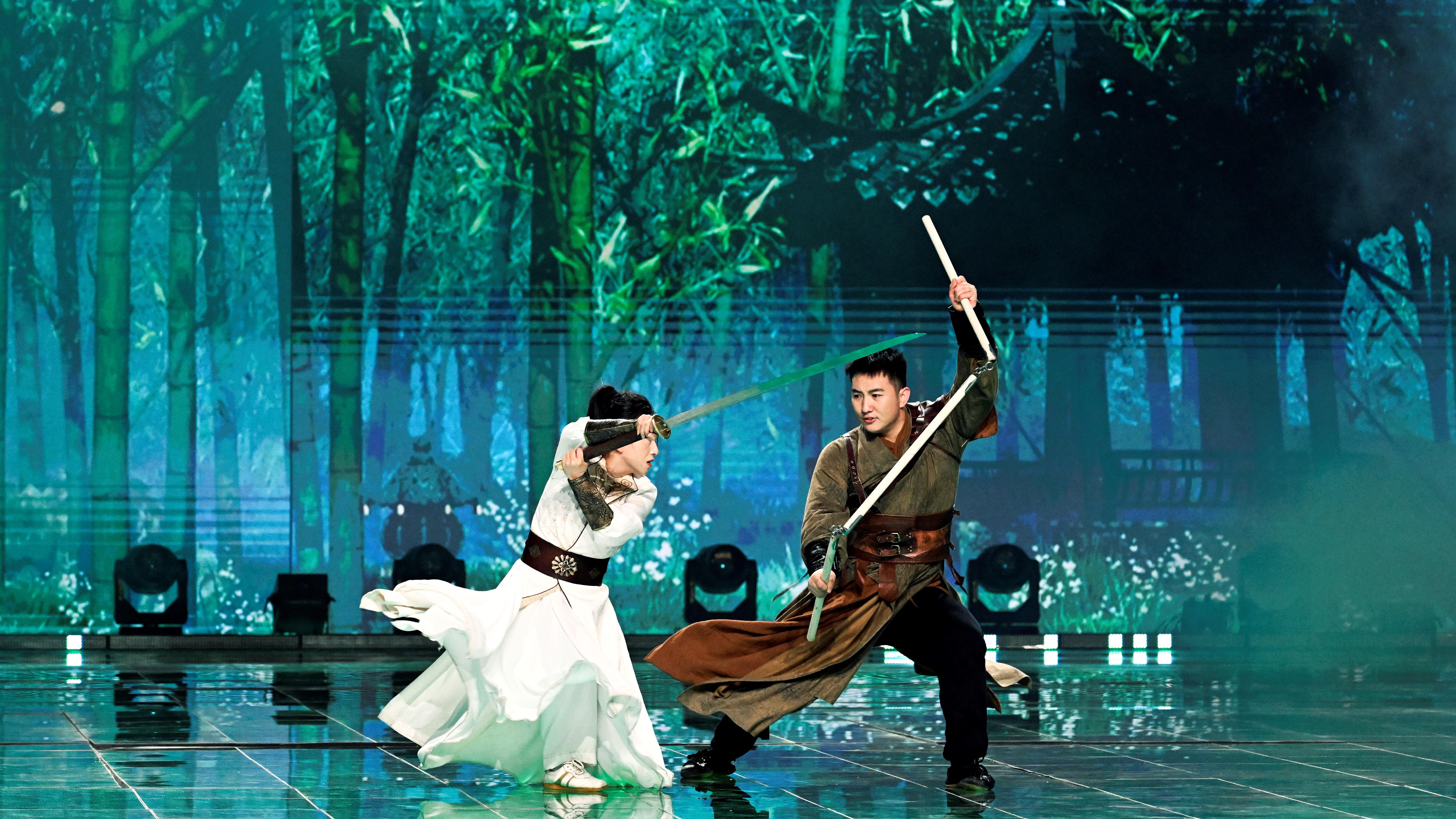 总台主持人王冰冰、张舒越演唱《在草地上肆意奔跑》,带给观众冬日里的温暖。王心凌的《彩虹的微笑》一展甜美又治愈的声线,勾起一波温暖“回忆杀”。《明天的烦恼交给明天 今天要跳舞》以慢节奏的爵士音乐风格,传达出年轻人拒绝精神内耗、勇敢洒脱的人生态度。兵器创意展演秀《出招》用真实“对战”再现特效级场面,配合武侠风的舞美设计,展现中国武术的迷人魅力和侠之大者的豪迈情怀。