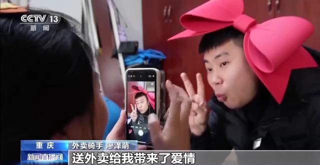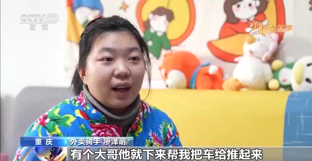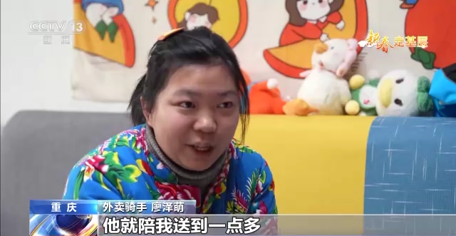 外卖骑手 廖泽萌:是有一个母亲和孩子,我那单还超时了有点久,我就自己特别不好意思。那个母亲给她孩子还说,她说赶紧谢谢阿姨,如果没有她送来餐,我们今天中午就没饭吃。然后那个小孩还跟我,谢谢阿姨。我觉得送的不仅仅是餐,还有温暖。
