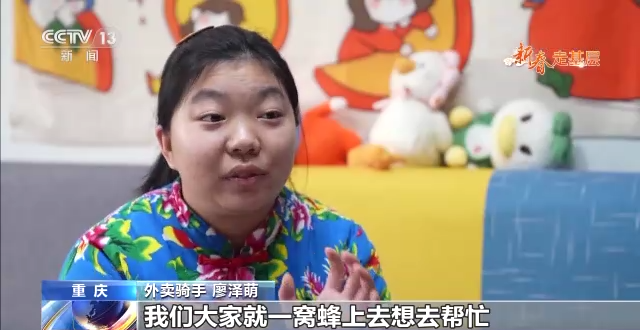 外卖骑手 廖泽萌:我们重庆人也很耿直,就有那种江湖豪情的感觉,就是哪里需要出力,我们大家就一窝蜂上去想去帮忙。当时他们说女生不太安全,又怕你体力跟不上。