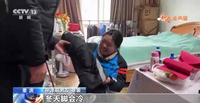 廖泽萌男友蔡裴:护膝,冬天很冷嘛。冬天脚会冷。不然很容易得关节炎。