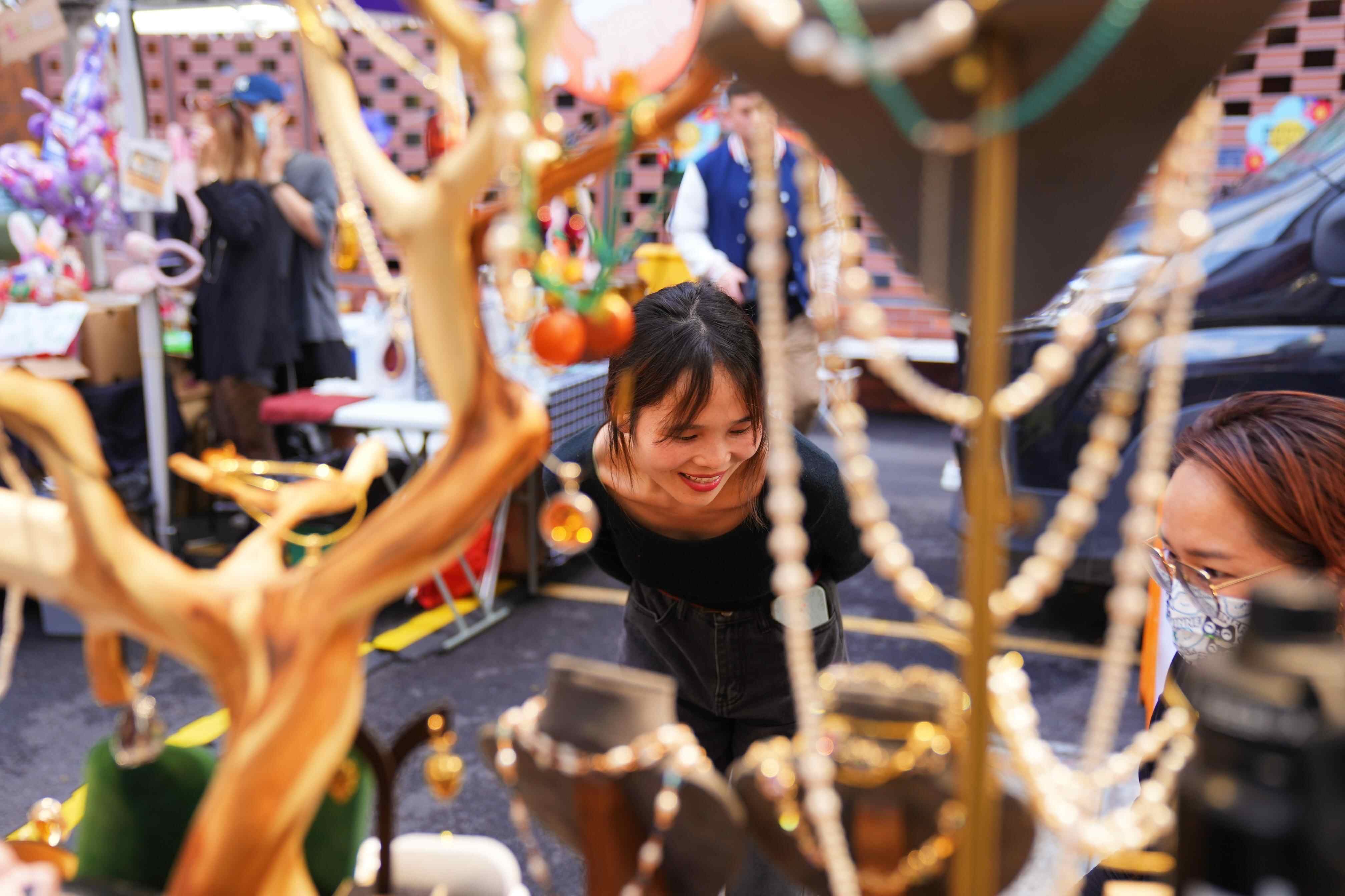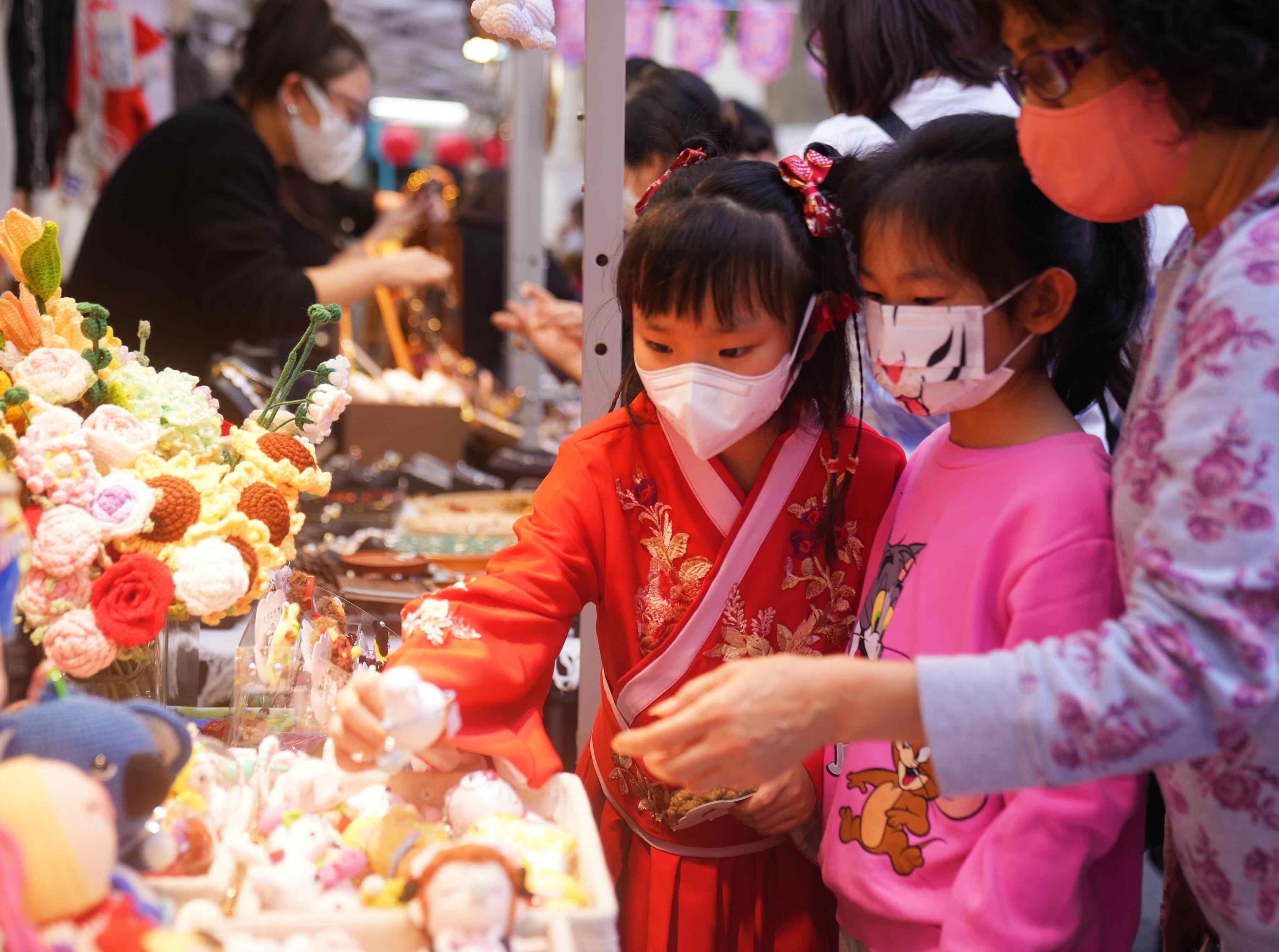 新春市集“行花街”,园区在中庭广场区域开展新春花街市集,以花卉搭景,以花香迎客,营造节日氛围。市集内有各式潮流服饰、创意礼品、艺术文创、插画花艺、互动体验的摊主和餐饮改装车到场,用花样创意打造一个尽情吃喝的玩乐派对;有兔子装扮的NPC骑复古单车在周边游走宣传,随机派出可兑换礼品的幸运牌;设有新春拍照专区,用兔子造型拍立得相纸,为游客拍下具有纪念意义的兔年造型合照;亦有拓印挥春、手绘风车、跳远等互动游戏区域,兑换趣味新春礼物;现场更有近景魔术表演、舞蹈快闪、音乐表演等,让惊喜时刻随时出现在身边。各式摊主、多样活动,共同打造兔年新春潮流市集,给游客带来新颖的逛花街体验。