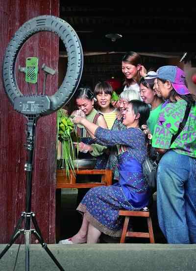 铜鼓县古桥村村民朱茶香成了“直播达人”,自制的客家美食得到网友们的喜爱。刘广新摄