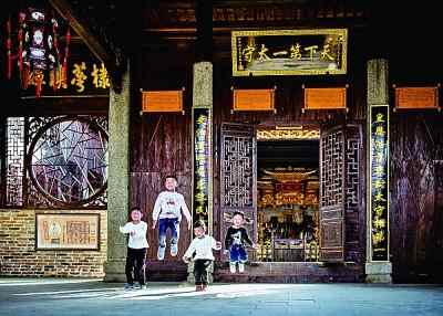 铜鼓县浒村古祠堂内,小朋友们在欢快地玩耍。许爱华摄