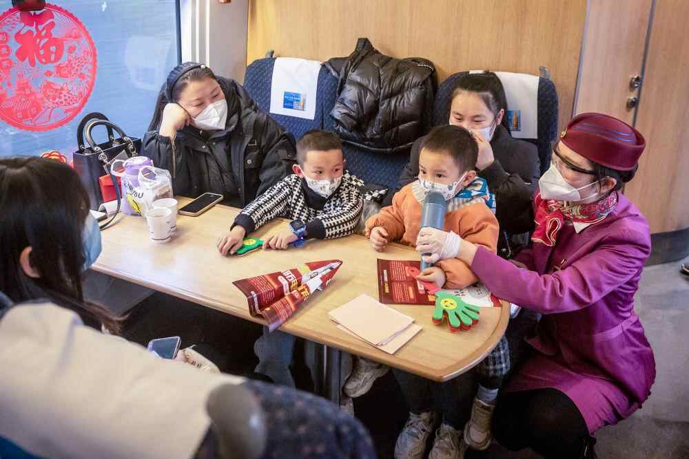 1月14日,旅客小朋友们和大家一起合唱“新年好”。