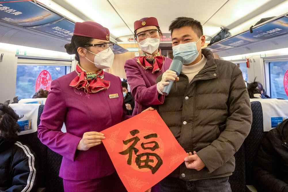 写春联,剪窗花,灶神爷前吃糖瓜;扫尘土,理头发,游子可归家。春节临近,成都局集团有限公司重庆客运段联合重庆铁路公安处组织青年职工,在重庆北开往万州北的G8704次列车上,为旅客带来一场年味十足的“送万福 进万家”迎新春活动,让奔波的旅客增添欢乐,在旅途中体验别样“年味”,活动现场一片欢声笑语,处处洋溢着祥和喜庆的良好气氛。