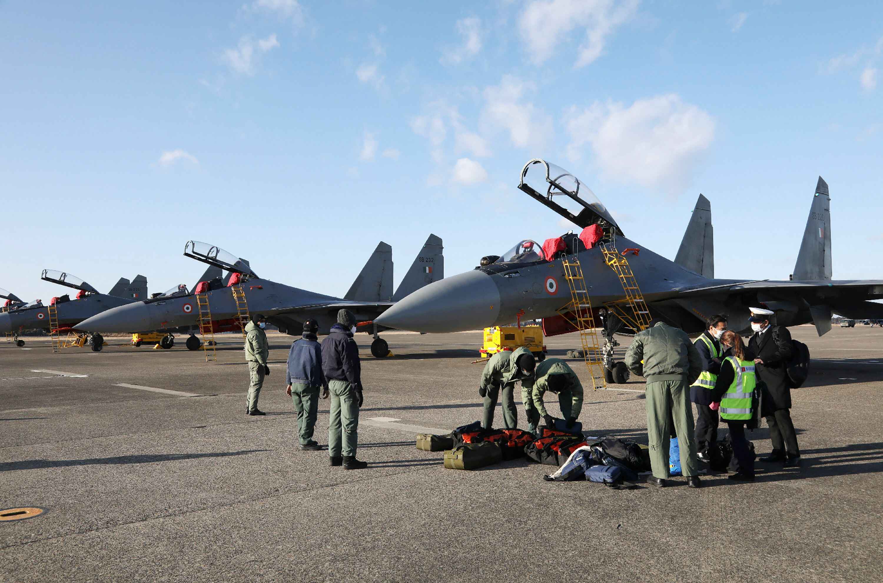 报道援引日本防卫省的声明称,日本航空自卫队的4架F-2战斗机和4架F-15战斗机预计将参加这次持续到26日、为期11天的空中作战训练。演习在百里空军基地附近进行,基地位于东京东北方向的茨城县。印度空军派出了4架苏-30MKI战斗机、2架C-17运输机和1架伊尔-78空中加油机参加演习。