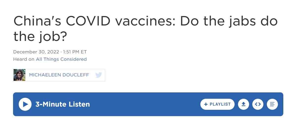 中国日报网1月16日电(党超峰)近期,针对部分西方媒体质疑中国疫苗的有效性和安全性,美国公共广播电台针对相关的谣言和误读日前刊发文章开展真相核查。