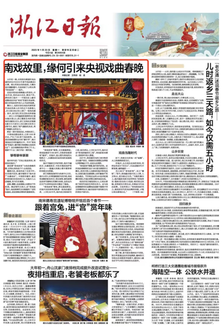 今天出版的《浙江日报》,在头版头条对此进行了报道: