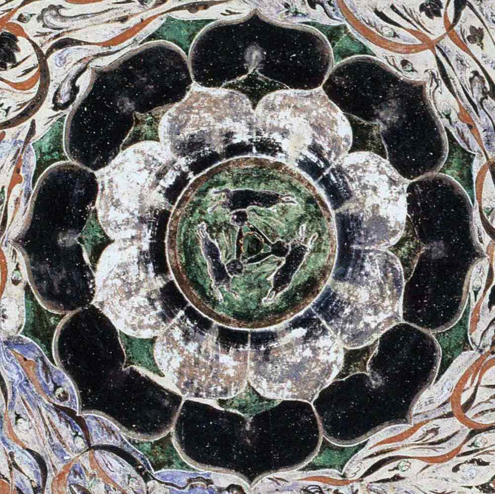 洞窟顶部的藻井是“三兔共耳”最常出现的位置