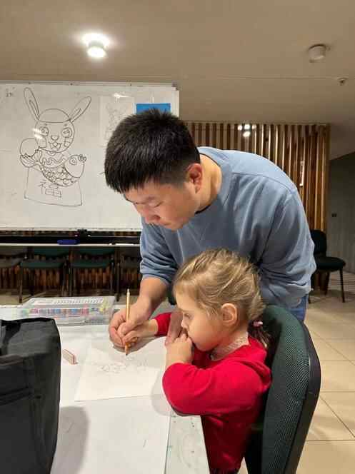 今年除夕刚好是周六,我正常去给小朋友们上绘画课,晚上回安置点和朋友们一起吃年夜饭。年夜饭我们包了饺子,然后准备一些卤菜。乌克兰也有饺子,和中国的饺子是不一样的。之前我还悄悄问过乌克兰的朋友,是乌克兰还是中国的饺子好吃,他们都说中国的饺子更好吃。
