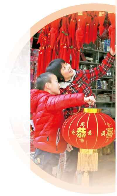 小朋友在四川阆中古城挑选灯笼。