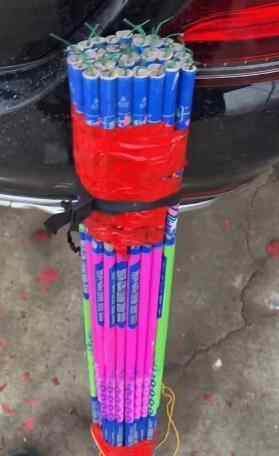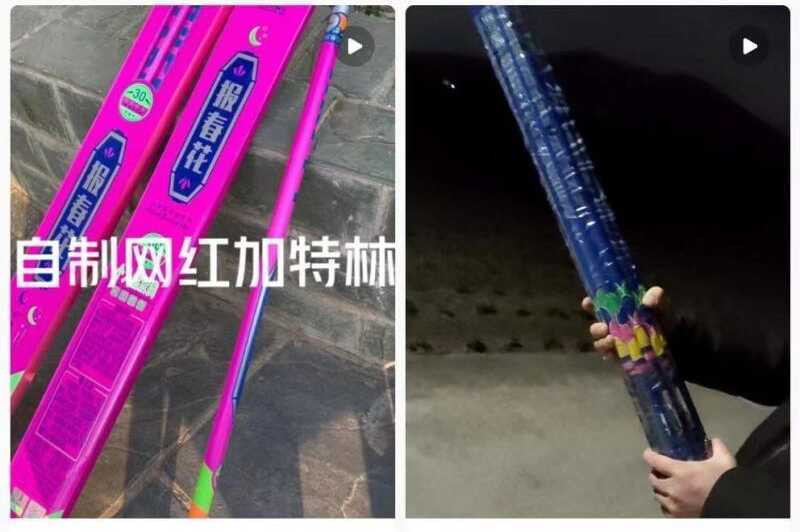 部分买不到加特林或者觉得加特林太贵的网友自己动手组装了简易版加特林烟花,也就是将多支普通的手持吐珠类升空烟花绑到一起,燃放时同时点燃,有人还在网上分享了自制教程和自制加特林的燃放效果。