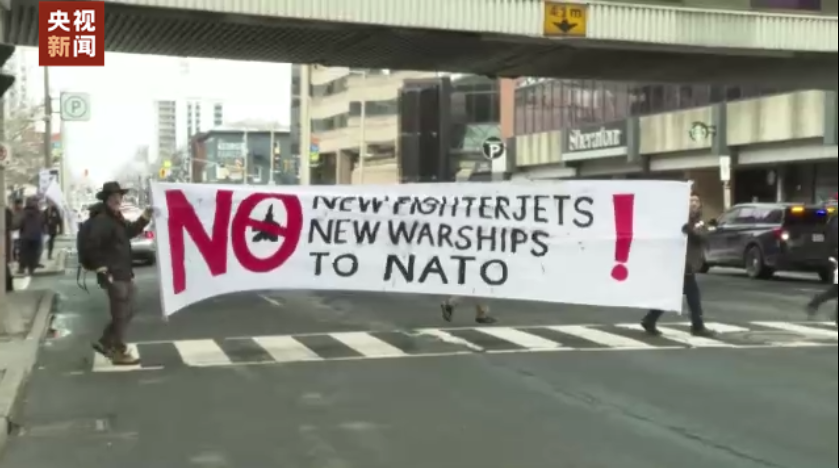 当地时间23日,加拿大反战组织汉密尔顿停战联盟在加拿大总理特鲁多及内阁成员下榻的酒店和会场外举行抗议活动,要求放弃购买F-35战机并退出北约。汉密尔顿停战联盟负责人斯通表示,他们希望加拿大政府能把缴纳的税金用于改善民生,而不是推动战争。