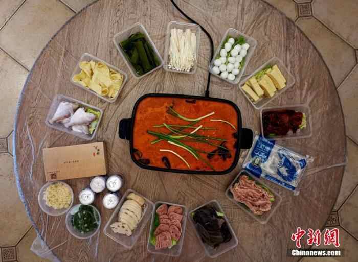 资料图为重庆市民通过手机下单取回家的火锅外卖。 中新社记者 周毅 摄