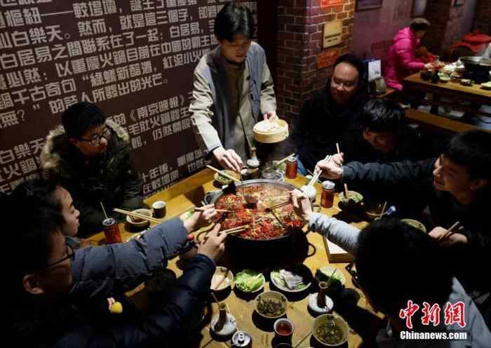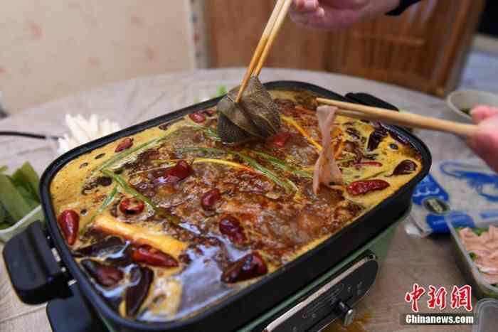 资料图为重庆市民通过手机下单在家吃火锅。 中新社记者 周毅 摄