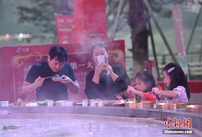 资料图为“大火锅”亮相重庆街头,吸引食客尝鲜。 中新社记者 周毅 摄