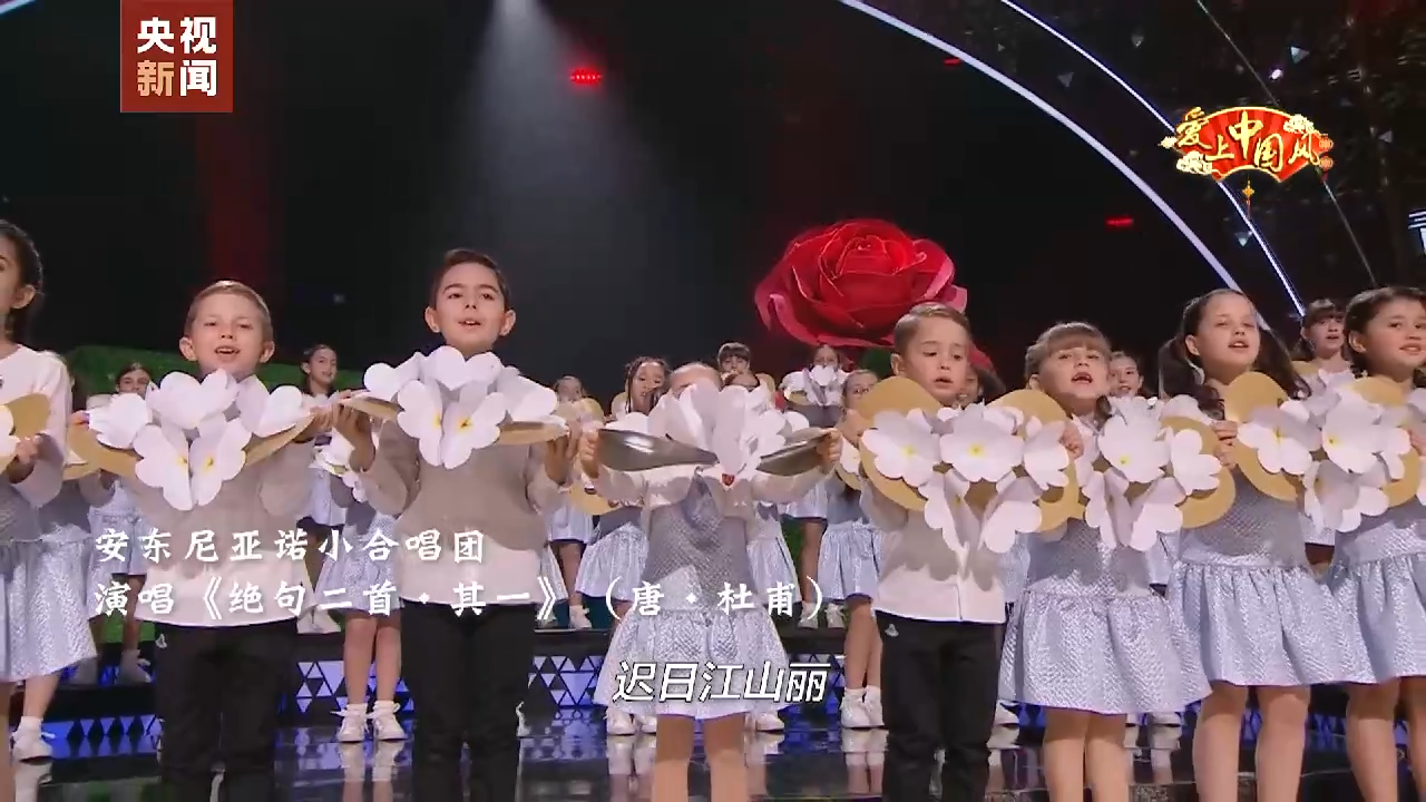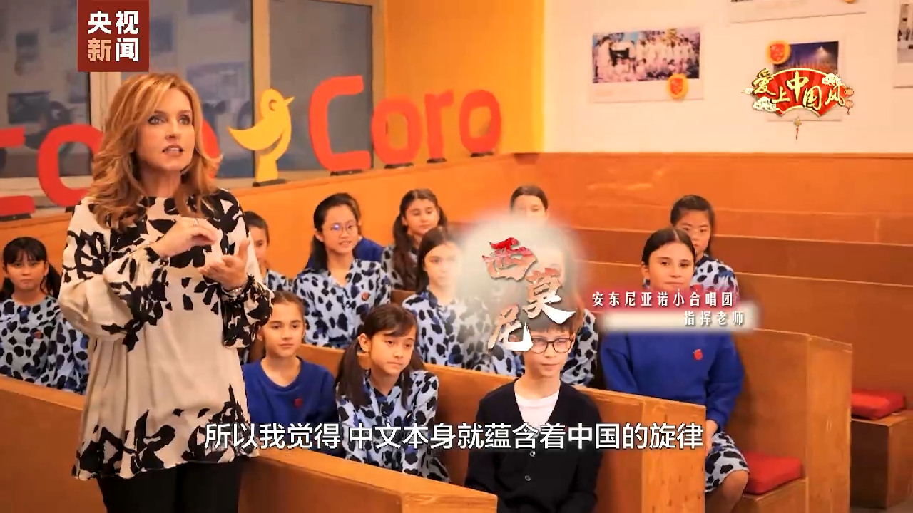 意大利安东尼亚诺小合唱团指挥老师 萨布丽娜·西莫尼:(通过排练中文歌曲)我认识了中国诗人杜甫,还有其他许多诗人。他们启发我和孩子们演绎出细腻的音乐元素。在录制电视节目演唱的过程中,这些音乐元素再现了中国传统音乐的魅力。