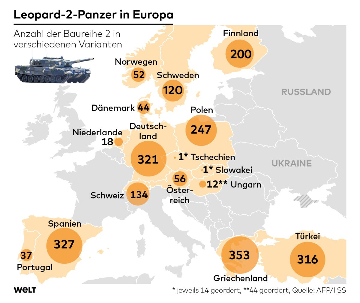 △ 德国豹-2坦克欧洲分布图(图片来源:AFP)