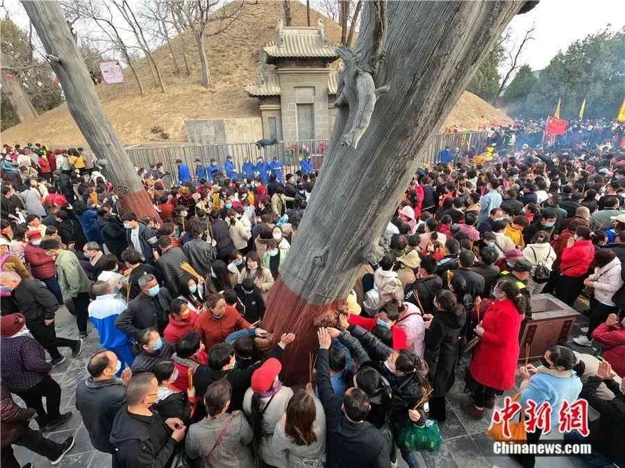 2022年,民众在河南淮阳太昊陵二月二庙会祈福。牛书培 摄