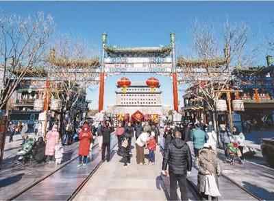 春节长假期间,北京前门大街熙熙攘攘,游人如织,处处洋溢着浓浓的年味。图为1月27日,游客在北京前门大街游玩。翁奇羽摄(人民图片)