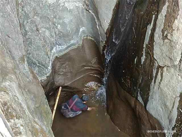 通过现场观察发现,手机掉入的峡谷有700多米深,里面有积水,加之气温较低,人下水的办法行不通,一番商量后决定抽水进行打捞。