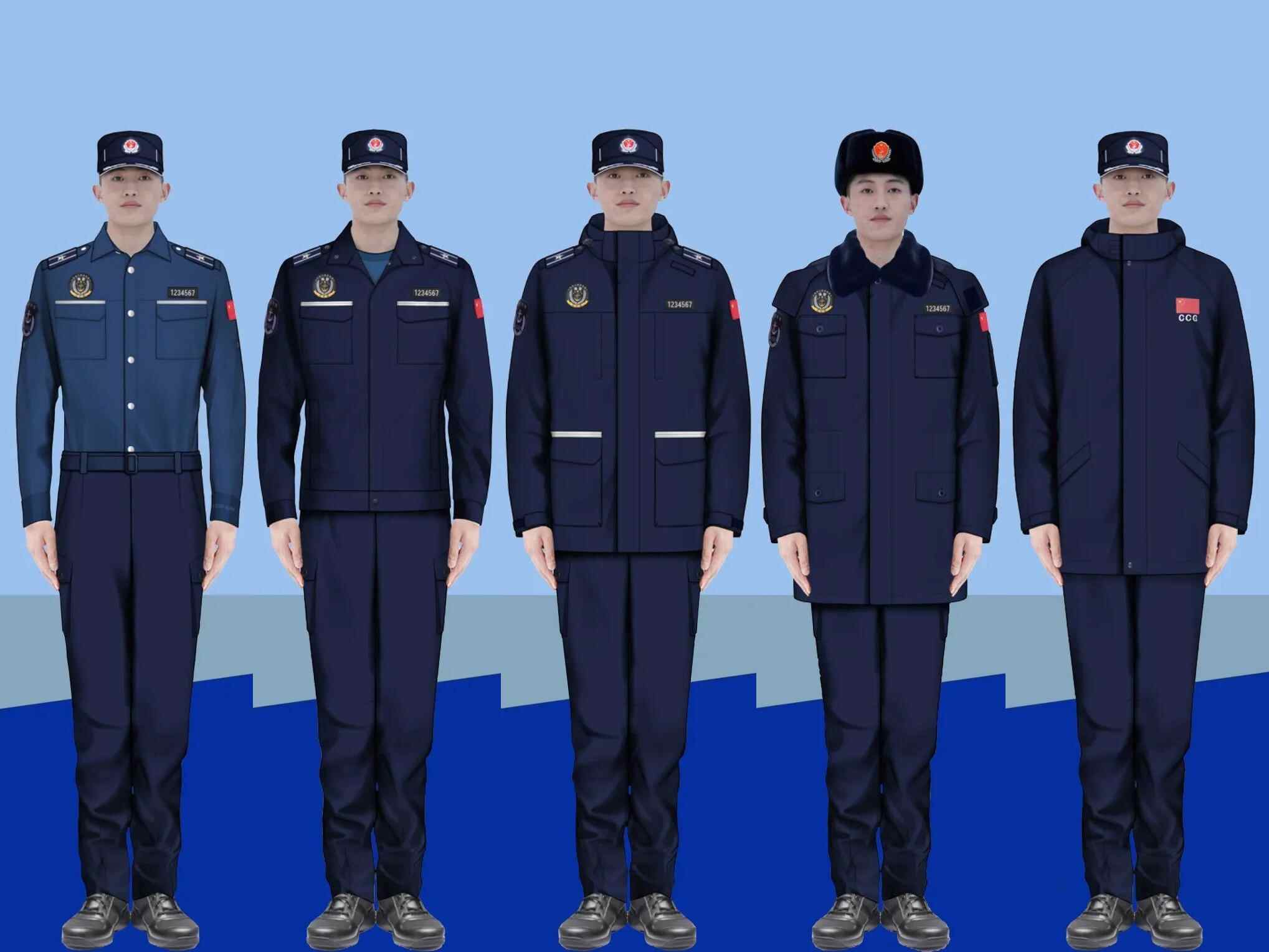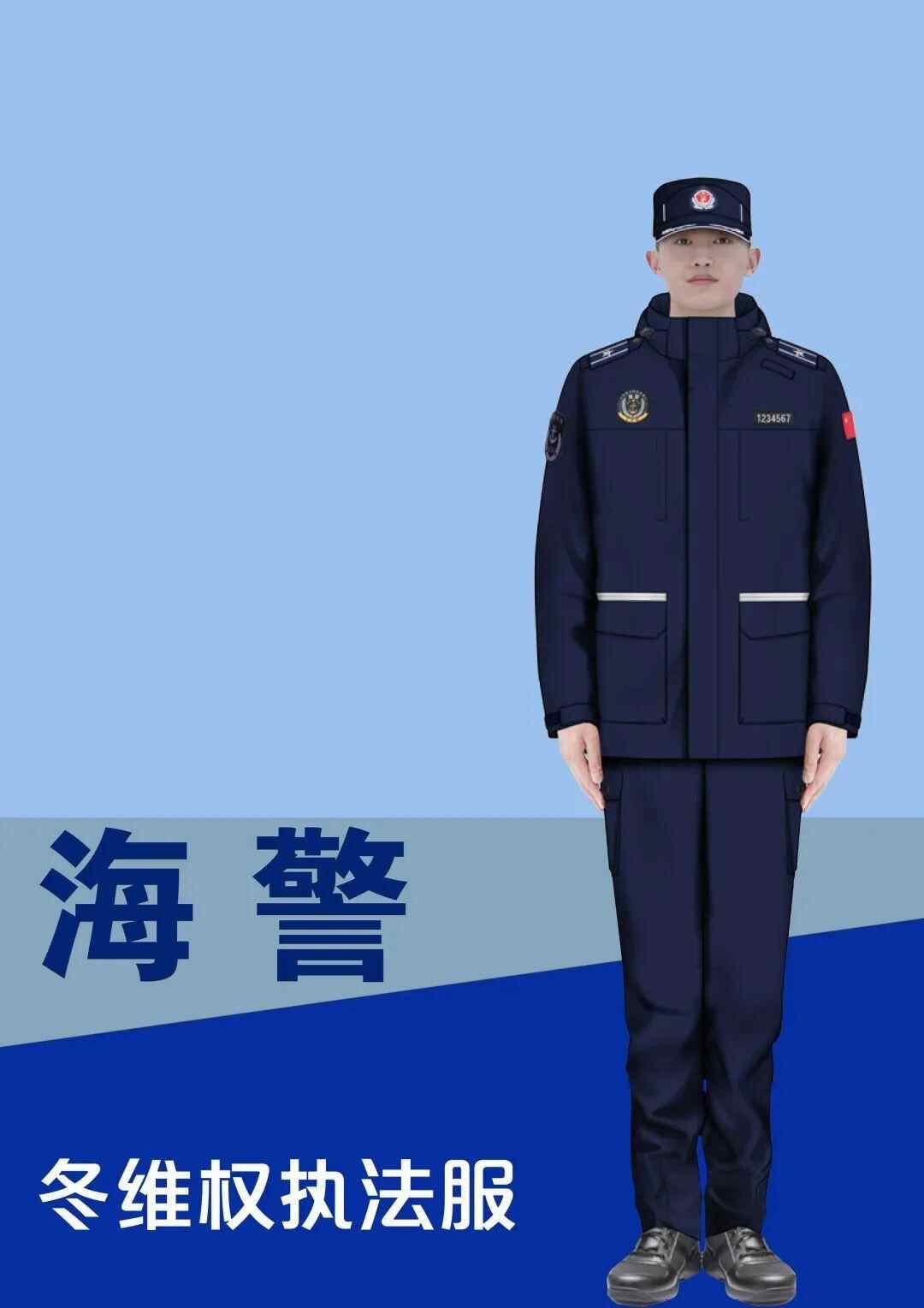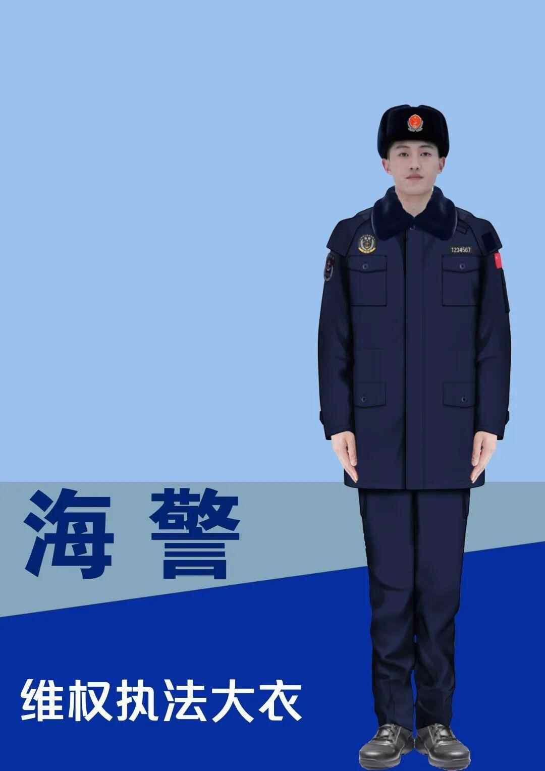 海警维权执法服主要有夏维权执法服、春秋维权执法服、冬维权执法服、维权执法大衣和维权执法分体雨衣,并配有维权执法帽、冬帽、套式肩章、勤务章、执法号、国旗臂章、海警臂章、舰艇作训鞋等配套服饰。