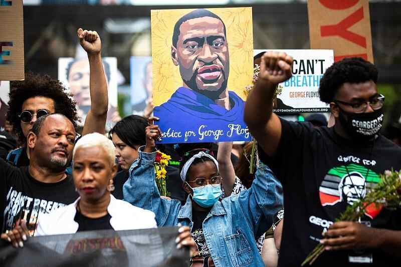 21年5月,美国民众在明尼阿波利斯市举行纪念弗洛伊德活动时,举起了拳头。