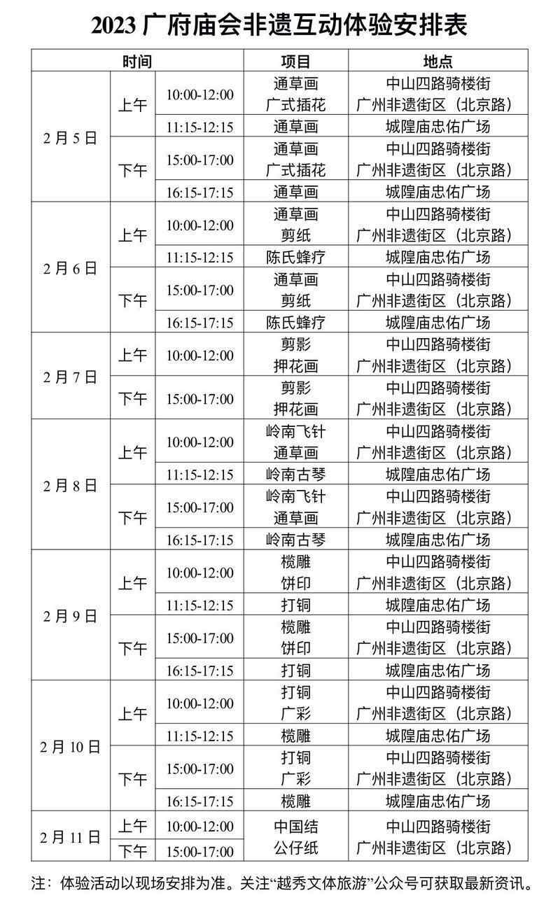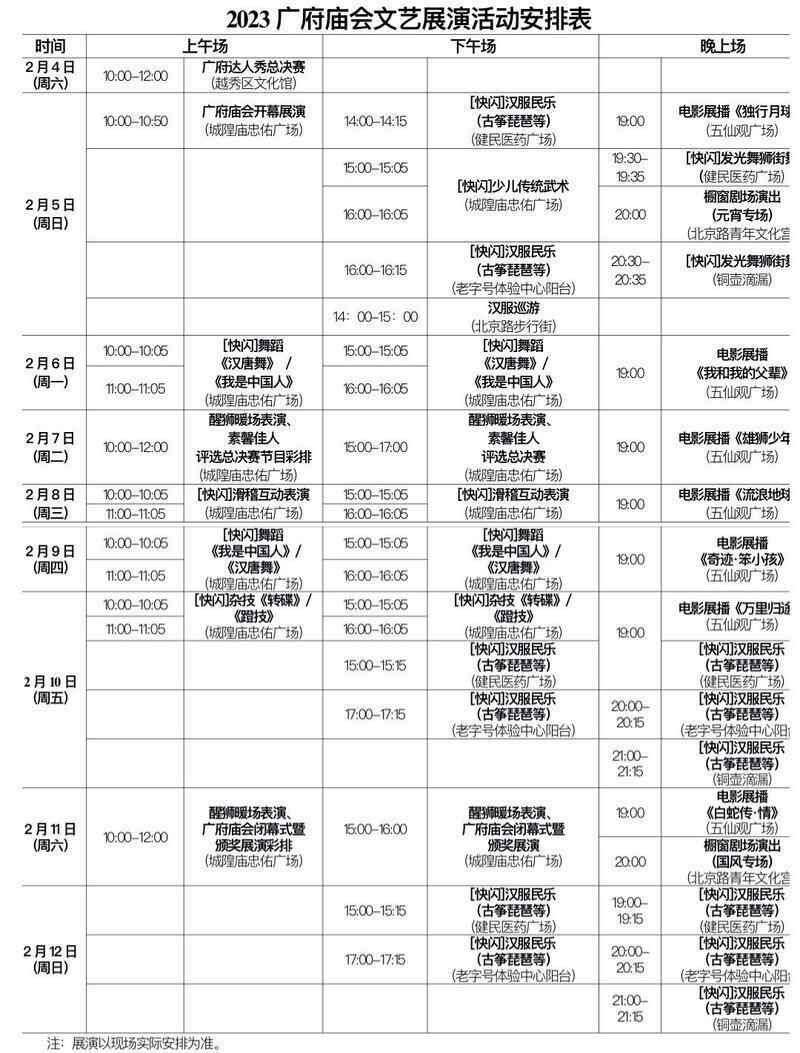 活动期间,五羊仙舞、南国醒狮、汉唐舞、杂技、武术也将精彩亮相。