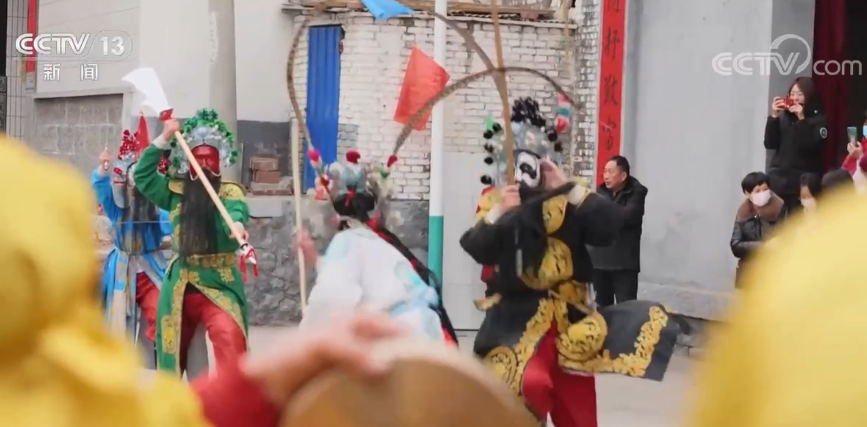 井陉桃林坪村村民 马君浩:我们桃林坪村的花脸社火是国家级非遗项目,已经有了600多年的历史,我从小就看爷爷、爸爸他们的表演,我也很喜欢,能够为老乡们演出,我觉得很有意义。