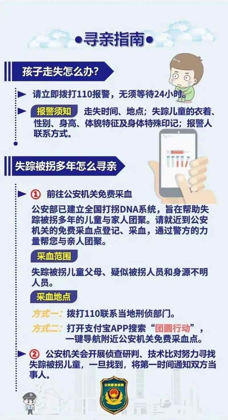 无论是失踪人员的家属,还是怀疑自己是被拐人员,都可以到就近的派出所免费采集DNA。广州市公安局打拐办会定期将采集的DNA入库比对,此举可以大大增加寻回亲人的机会。