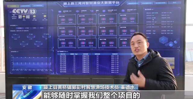 颍上县黄桥镇郭彭村智慧渔场技术员 董德水:我们通过这个数据平台,能够随时掌握我们整个项目鱼的生产状况,鱼的水质的情况都可以随时进行掌握。