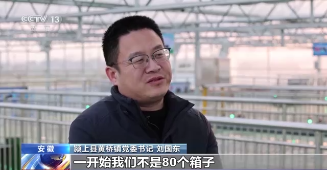 颍上县黄桥镇党委书记 刘国东:一开始我们不是80个箱子,实际一开始就四个箱子,四个箱子先养,养过以后让他们来看,有效益,立即加大养殖量,变化就大了,现在很多村都要往这里面投。