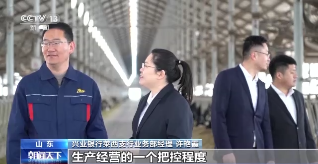 兴业银行莱西支行业务部经理 许艳霞:我们就能够知道咱们的牛是在我们的牛场正常在这产奶,从而达到我们对你们的生产经营的一个把控程度,我们就可以通过银行授信。