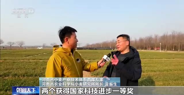 河南省小麦产业技术体系首席专家 河南省农业科学院小麦研究所所长 雷振生:这块儿麦田可不简单,它不光繁育种子,而且收获科技成果。就这一块麦田,我们曾经出过两个获得国家科技进步一等奖。由于我们的品种在不断改良,因此目前生产上主栽的一些品种都具有高产、稳产性好、综合抗力能力强这么一种特点。