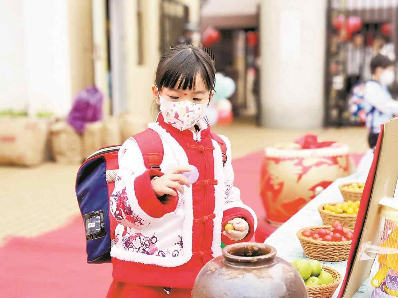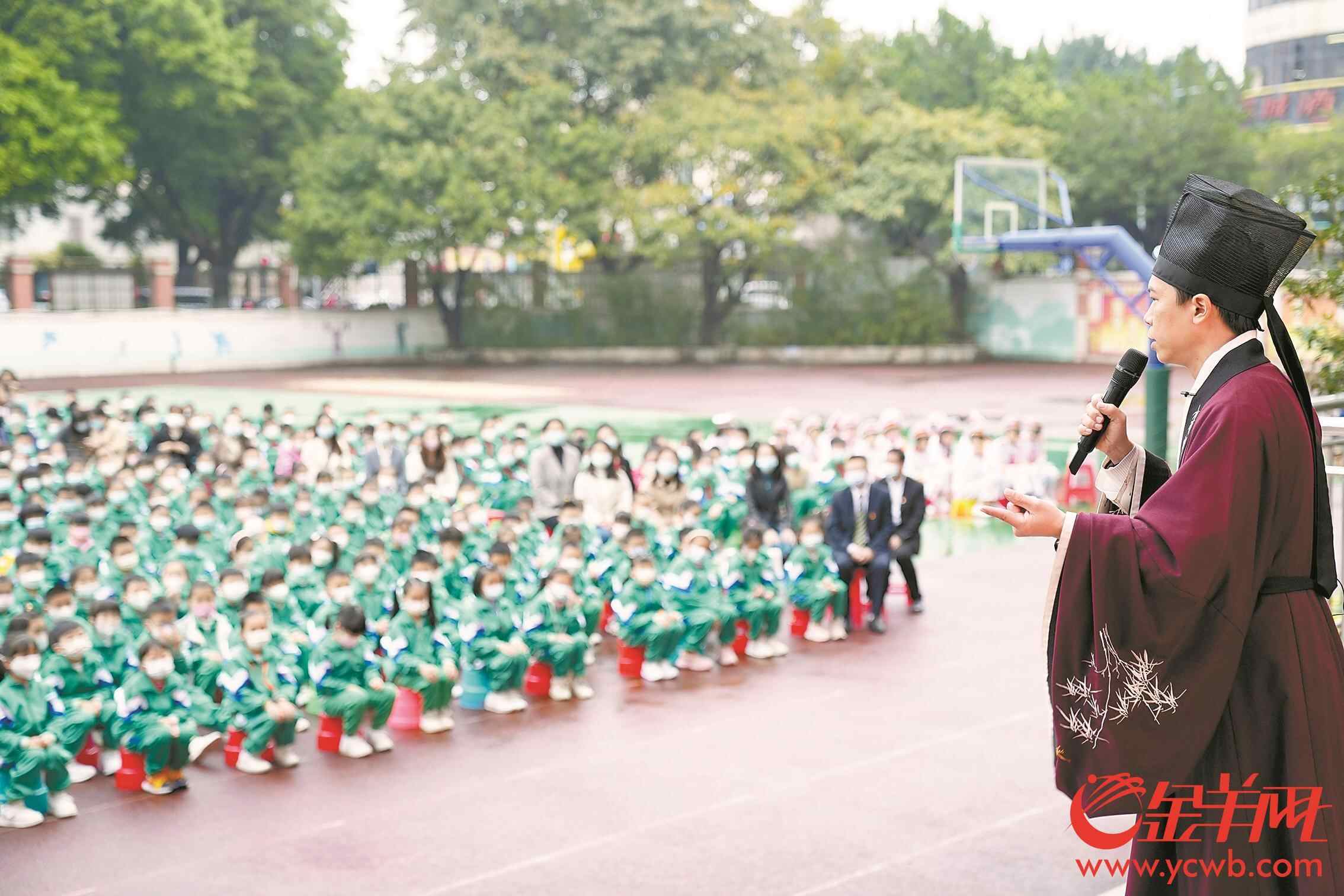 “开学啦,祝愿同学们一切‘怗当’(意为顺利)!”2月6日,广州市荔湾区合兴苑小学的开学礼上,广府文化学者现身,传授地道广府粤语。“怗当”“饮澌啦”(意为喝完了)“落雨大,水浸街”等常见、常用的粤语字句出现在开学礼上,同学们以有趣的视频记录在家中说粤语的生活场景。这也是学校开展“粤讲粤正”广府传统文化宣教系列活动之一。“看到同学们在日常生活中善用粤语,我真的好开心,可以说是笑到‘四万咁口’(意为开怀大笑)。”广府文化学者李丞彪身穿国风特色服装,在舞台上点评同学们的粤语发音和用词。
