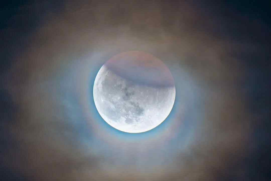 10月29日的另一场月偏食,食分0.127,也就是月亮只会被挡住一个很小的“角”,发生在后半夜。