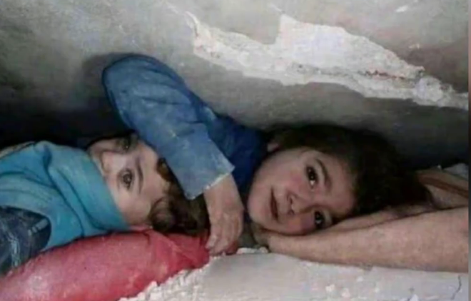 土耳其大地震后,有网民在社交媒体上传了一张令人动容的照片,照片中一名7岁女孩与弟弟同困于瓦砾之下,被大石块压住,她用幼小的手保护着弟弟的头部和身体,整整坚持了17个小时。