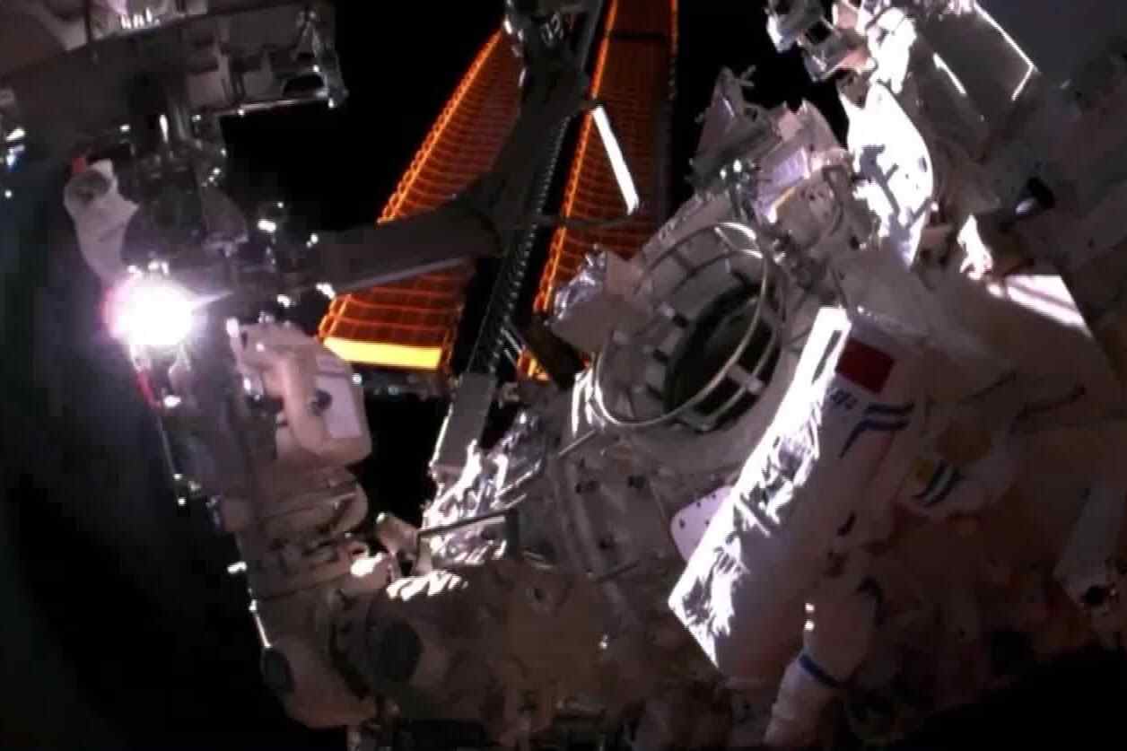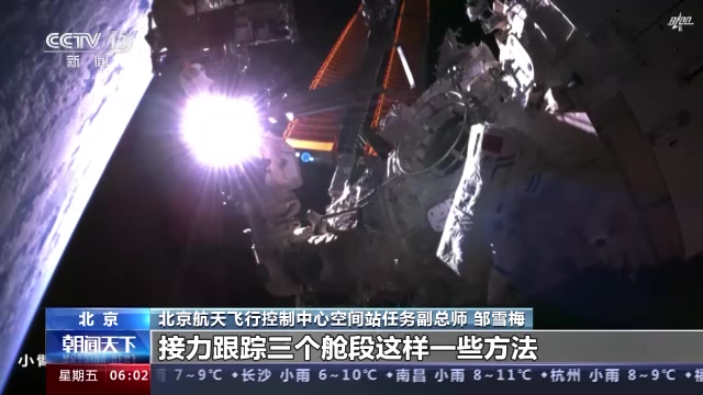航天科技集团五院空间站系统副总设计师 朱光辰:这次任务是空间站三舱组合体建造完成以后第一次跨三舱的大范围作业,航天员携带大型物品从太阳能电池翼和舱体之间的空隙经过,为了保障整个任务顺利完成,事先进行了充分的仿真和分析,目前工作都是正常的,所有既定任务都按计划完成了。