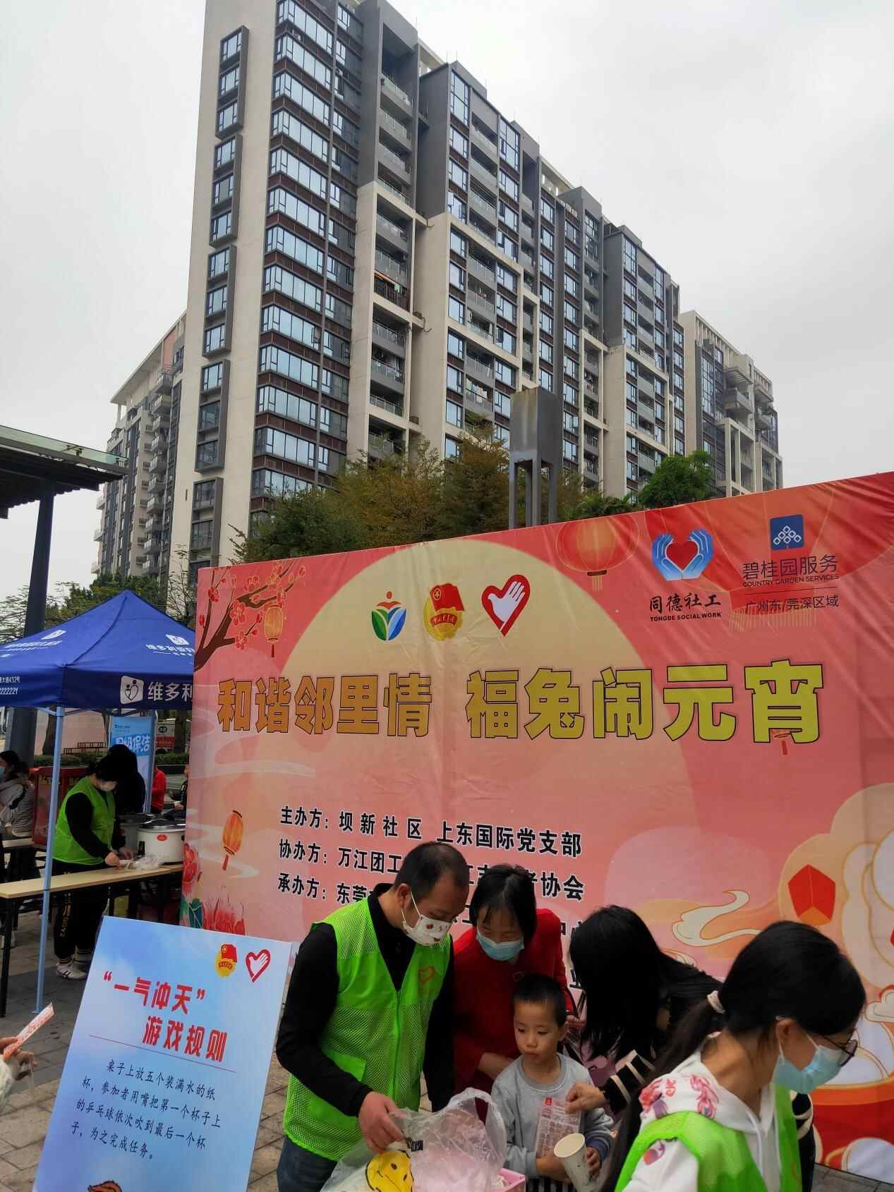 在东莞大朗碧桂园,闹元宵活动从10点正式开始,先后吸引了上千业主参与,大家一起吃汤圆、抽大奖、吹气球、套圈圈,玩得不亦乐乎。