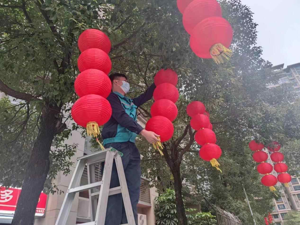 扮靓小区拉满春节氛围感