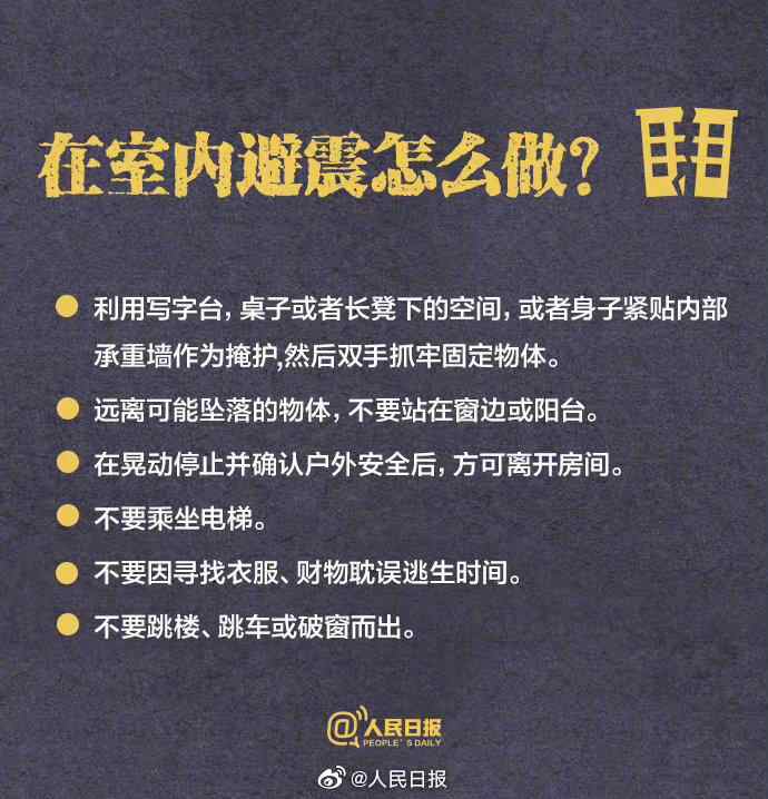 遇到地震时,使用哪种求生姿势最有效?在室内或室外避震怎么做?地震时遇到特殊危险怎么办?戳图学习↓↓