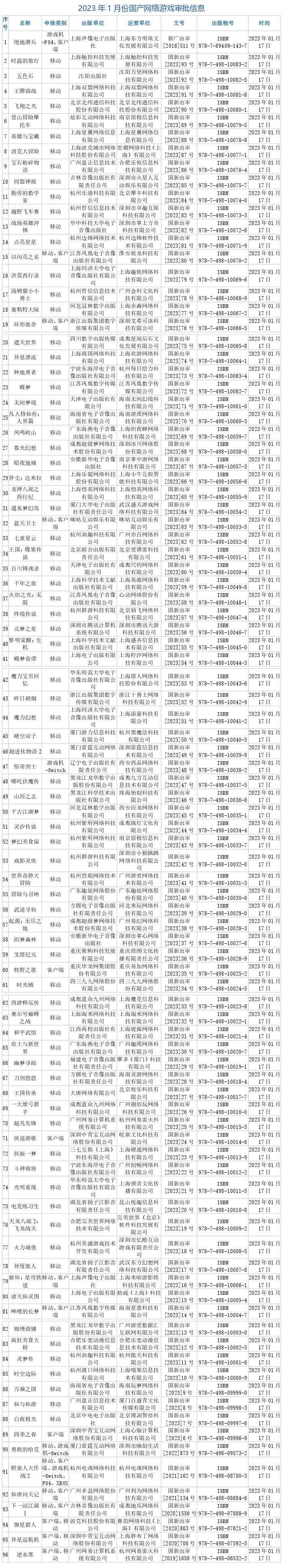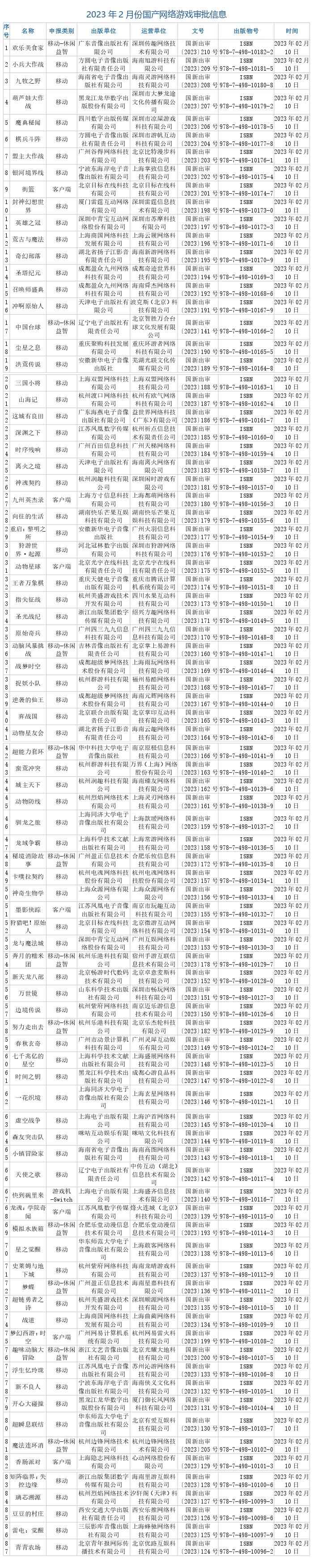 以下为2023年1月份、2月份国产网络游戏审批信息↓