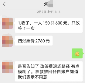 国航客服告诉他,改签的差价可以原路退还,但原票款必须退至乘机人本人账户,也就是必须分别退到4个乘机人的银行卡上。