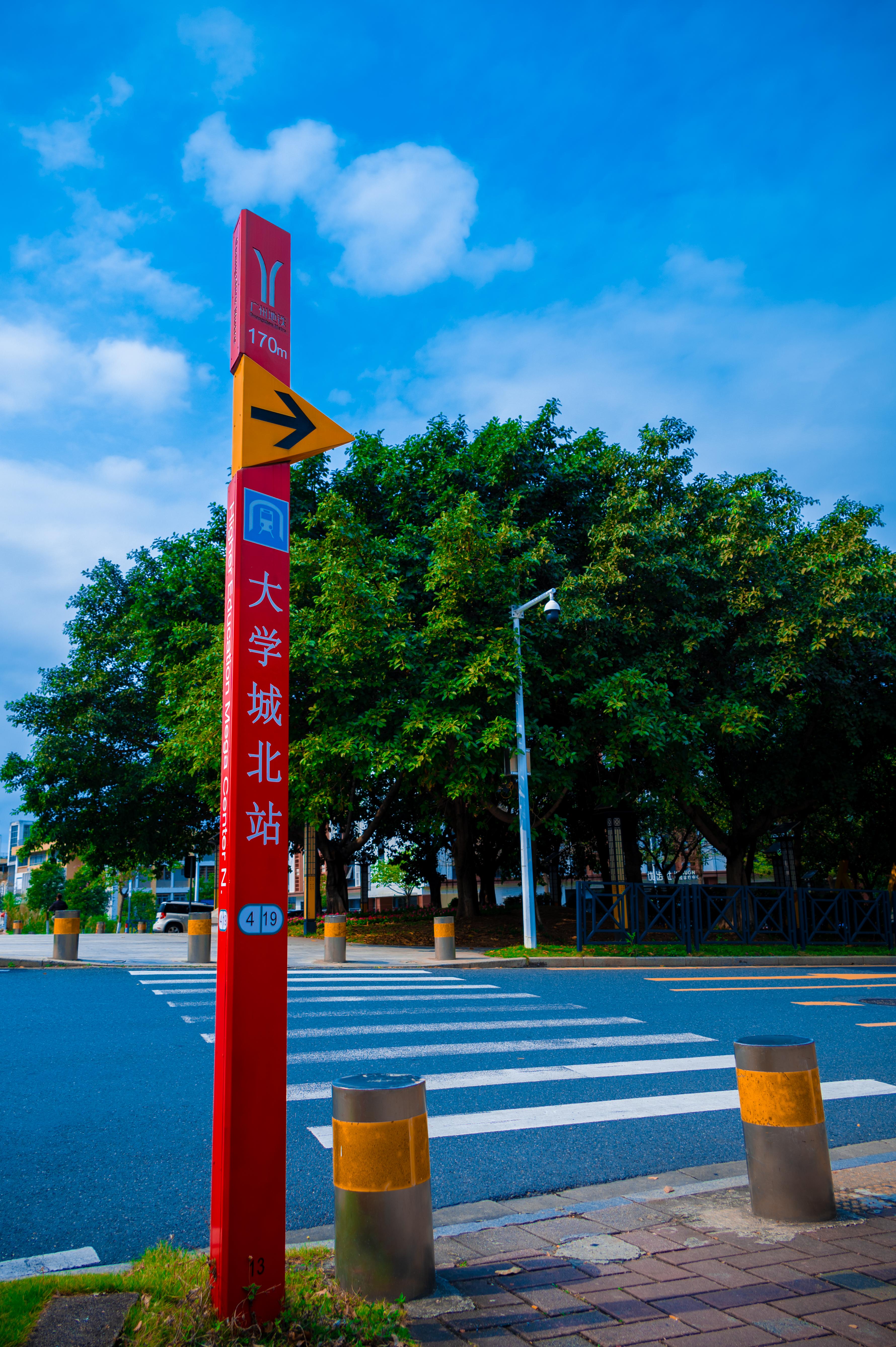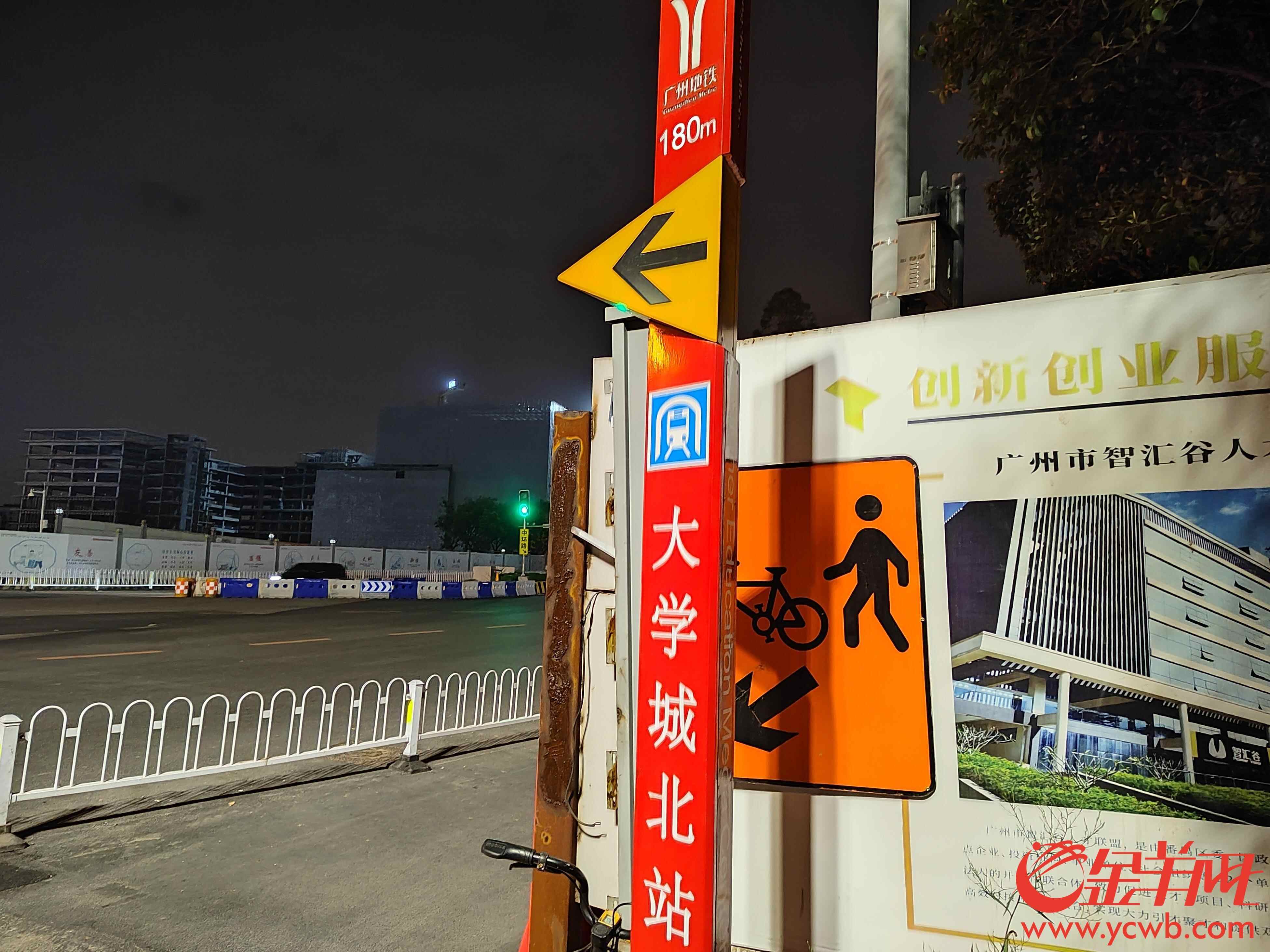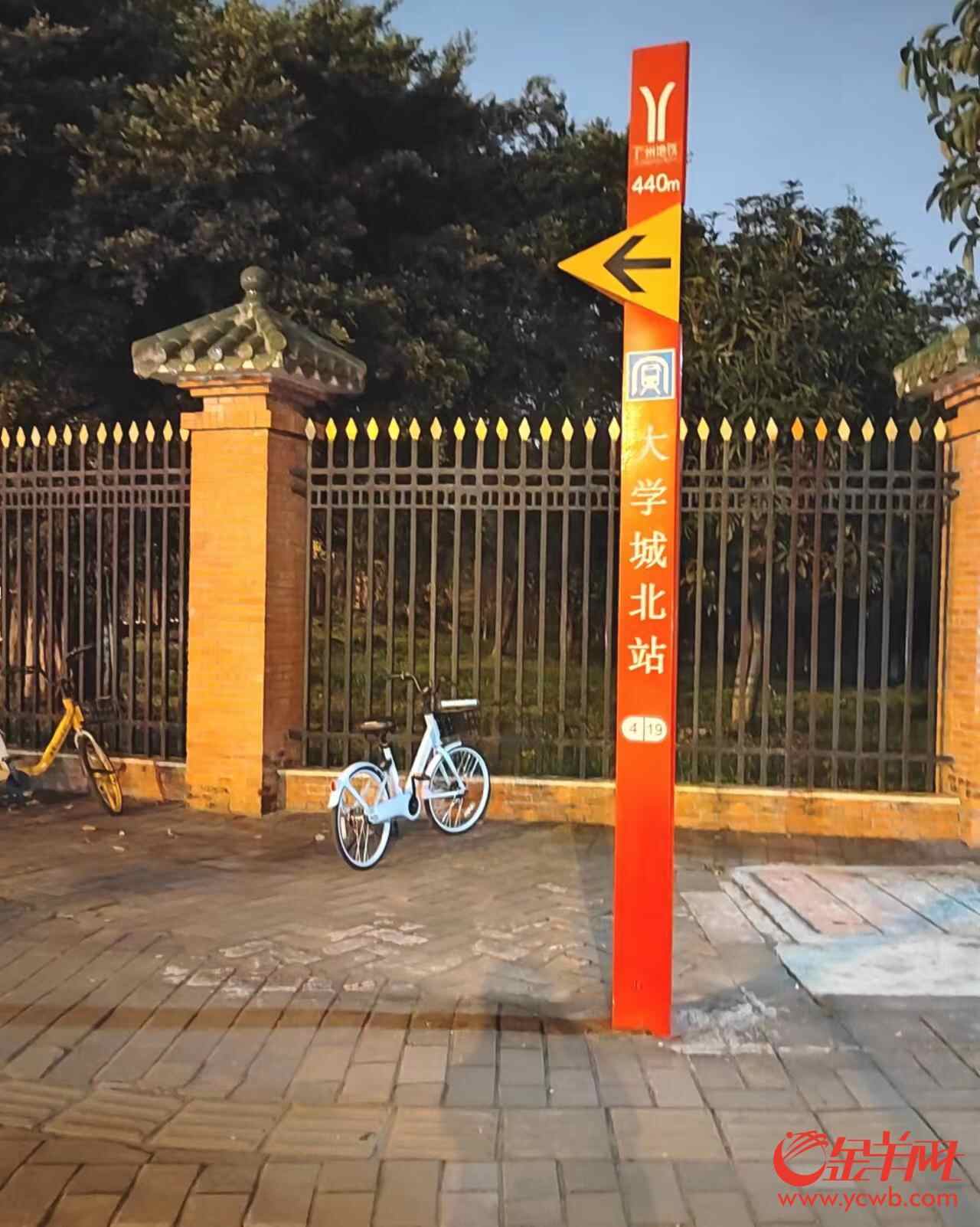 大学城北站多个导向标识柱增加距离标记 严艺文 孙牧 摄