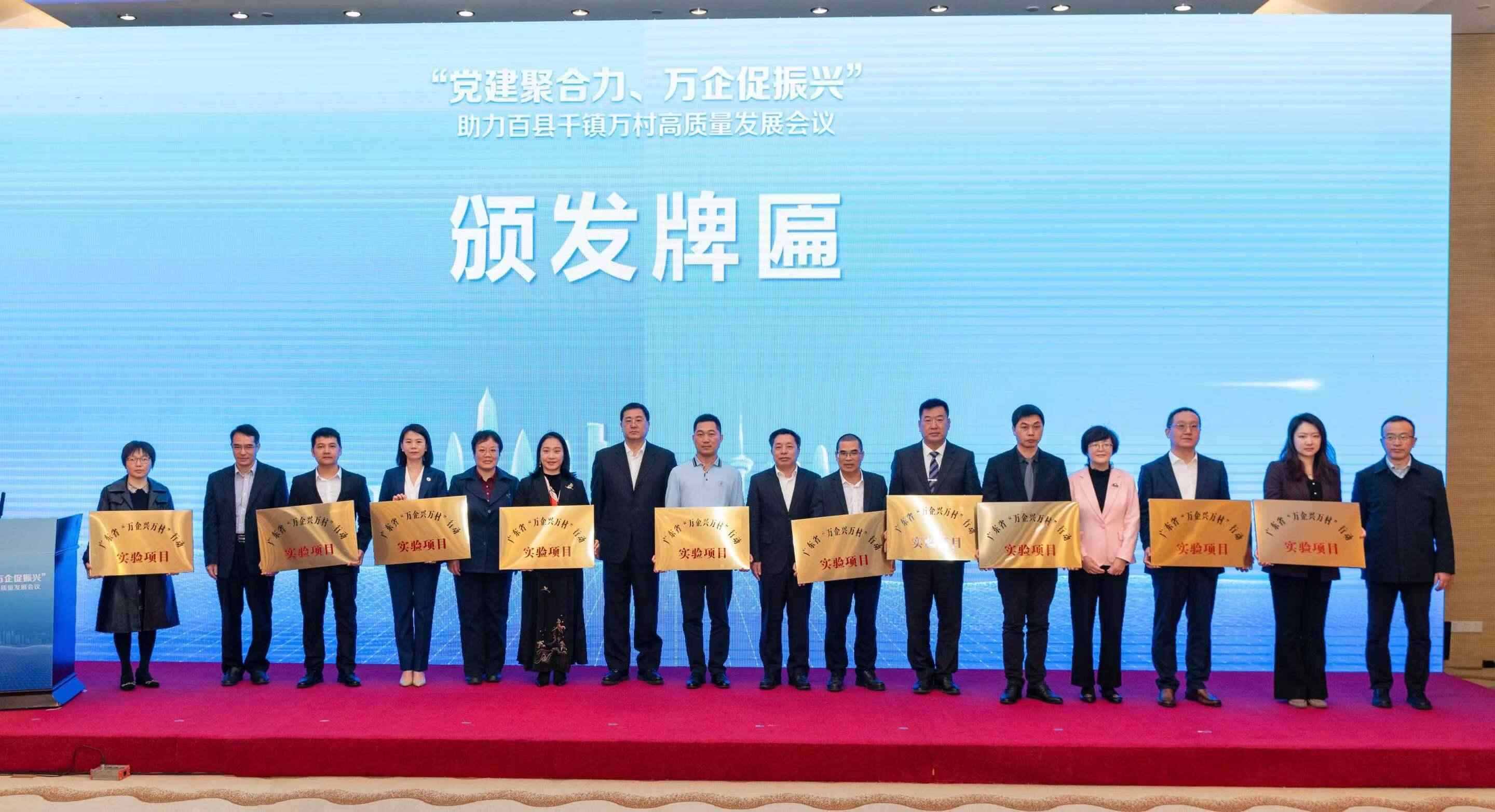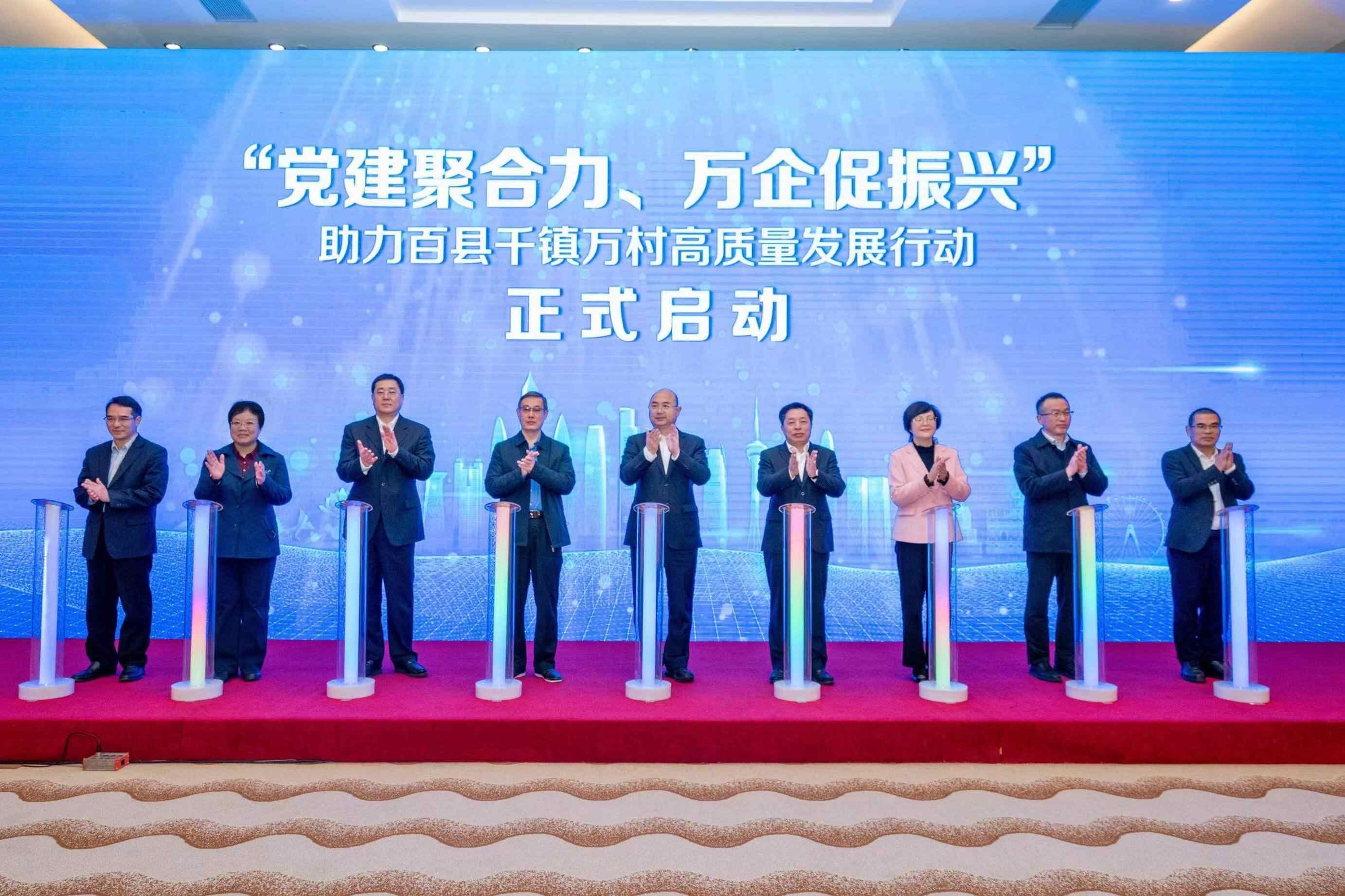 会上,温氏集团、碧桂园集团党委、珠海市工商联、广州市茂名商会领导分别代表民营企业、非公经济党组织、工商联系统、商协会作交流发言,广发证券党委领导代表非公经济党组织倡读《“党建聚合力、万企促振兴”助力百县千镇万村高质量发展行动倡议书》,举行非公经济组织党组织和镇村党组织对口共建仪式,与会领导一起为首批省级“万企兴万村”行动实验项目企业代表颁发牌匾,启动“党建聚合力、万企促振兴”助力百县千镇万村高质量发展行动仪式。